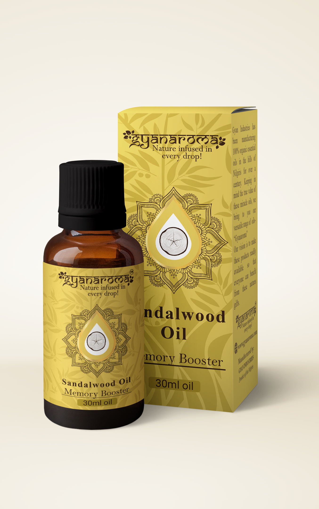 Sandalwood oil has a rich, woody aroma. It soothes and moisturizes the skin, promotes relaxation, and enhances meditation and spiritual practices.